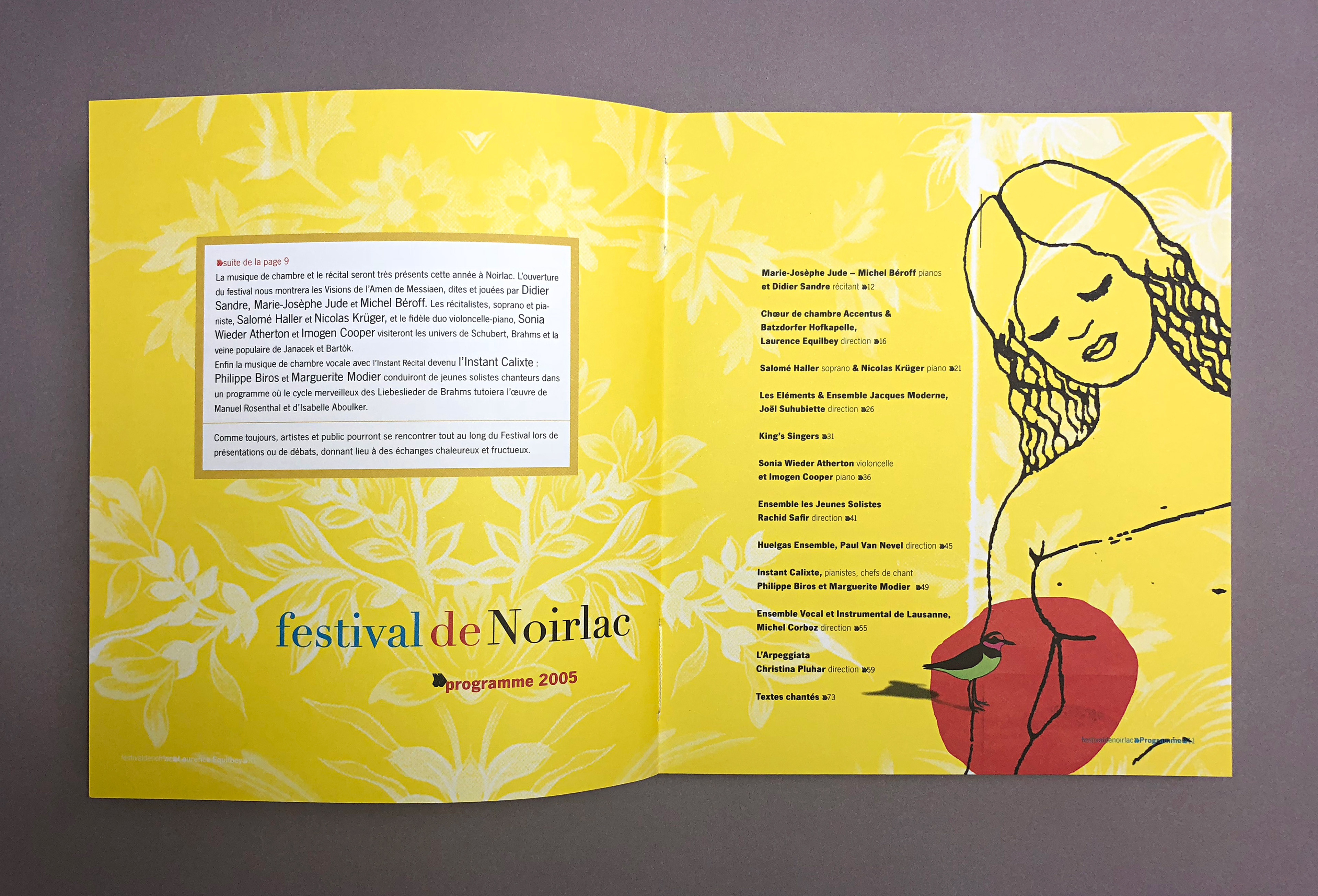 Conception, réalisation, illustrations & direction artistique pour le festival vocal de Noirlac (Cher, 18) de 2001 à 2005.